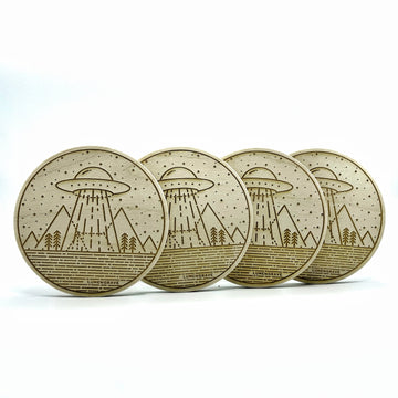 Set your drink down on a cosmic adventure with our Alien and UFO Wood Engraved Coaster Sets of 4, where each coaster unveils extraterrestrial mysteries and sparks conversations that are truly out of this world.
